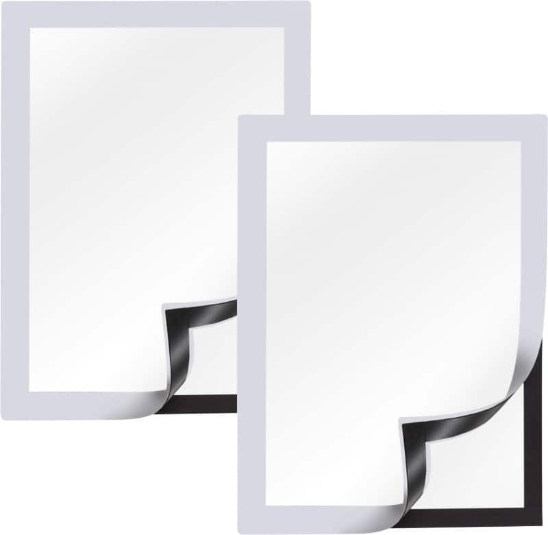 Durable Duraframe 4871. Dit is een zelfklevend kader, bestaande uit twee transparante folies die samen worden gehouden door de magnetische rand. Dankzij de magnetische rand kan de gegeven informatie gemakkelijk worden vervangen. Kleeft op alle oppervlakken met een vlakke ondergrond. Herpositioneerbaar. Het frame heeft een A5 formaat met de volgende afmeting (L x B) 210 x 148 mm. Kleur zilver. Hoeveelheid verpakking 2 stuks.
