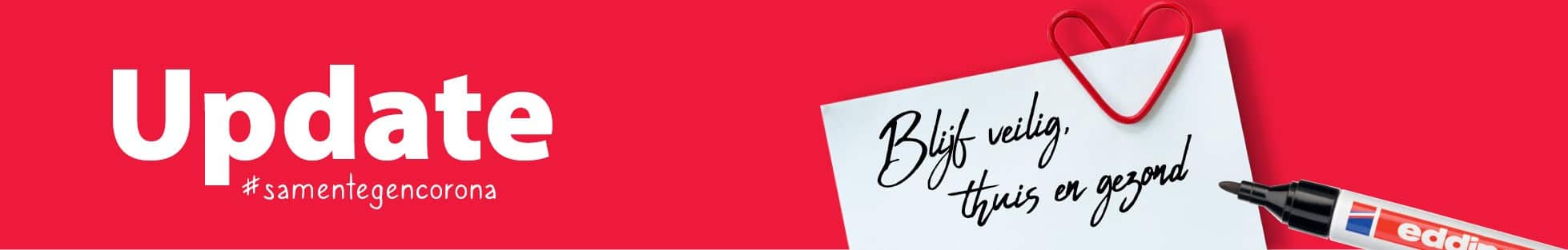 BELANGRIJK: Indien uw bedrijf gesloten is vanwege het coronavirus, willen wij u vragen uw afleveradres te wijzigen. Selecteer bijvoorbeeld uw thuisadres als afleveradres tijdens het plaatsen van uw bestelling. Dit om te voorkomen dat uw bestelling retour afzender worden gestuurd. Alvast dank voor uw medewerking.