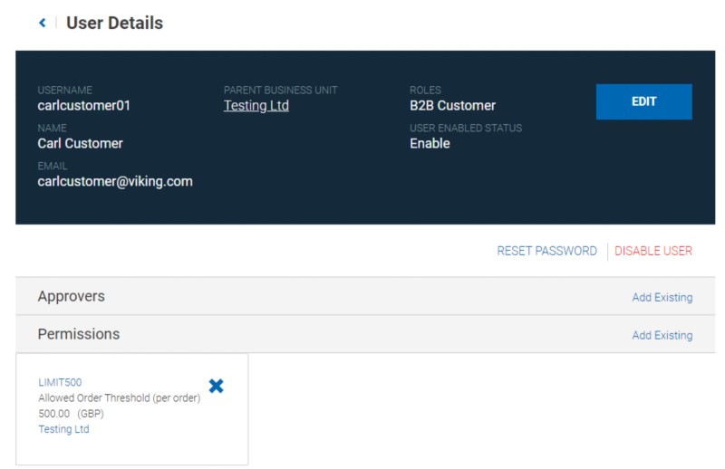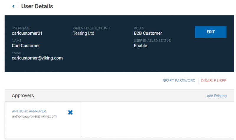 U krijgt een overzichtspagina te zien met alle informatie over de gebruiker aan wie u een fiatteur wilt toewijzen.