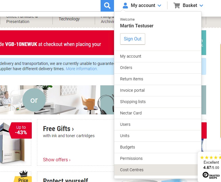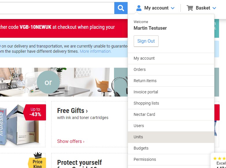 Zorg dat u ingelogd bent als beheerder van uw Viking-account