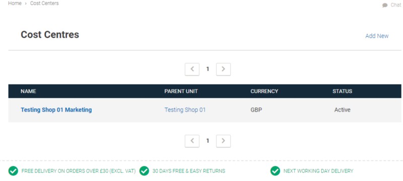 U krijgt nu een overzicht te zien van alle bestaande kostenplaatsen binnen uw Viking-account.