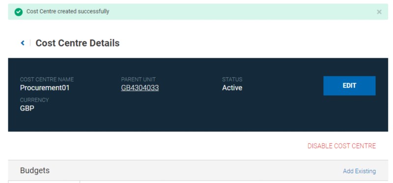 U kunt ook een budget vastleggen voor de kostenplaats. Informatie hierover vindt u in de tutorial "Budgetten maken en toewijzen".