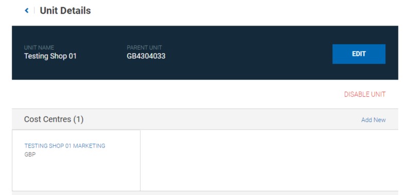 Een andere weg om kostenplaatsen op te zetten voor een eenheid, is via de functie "Eenheden".